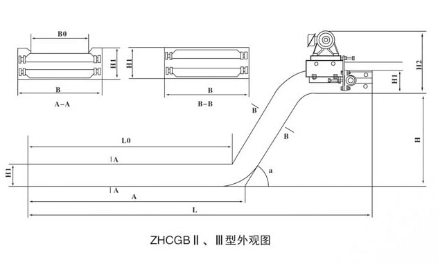 1、根據安裝空間的大小確定刮板排屑機的高度H2(≥140mm),長度L0,